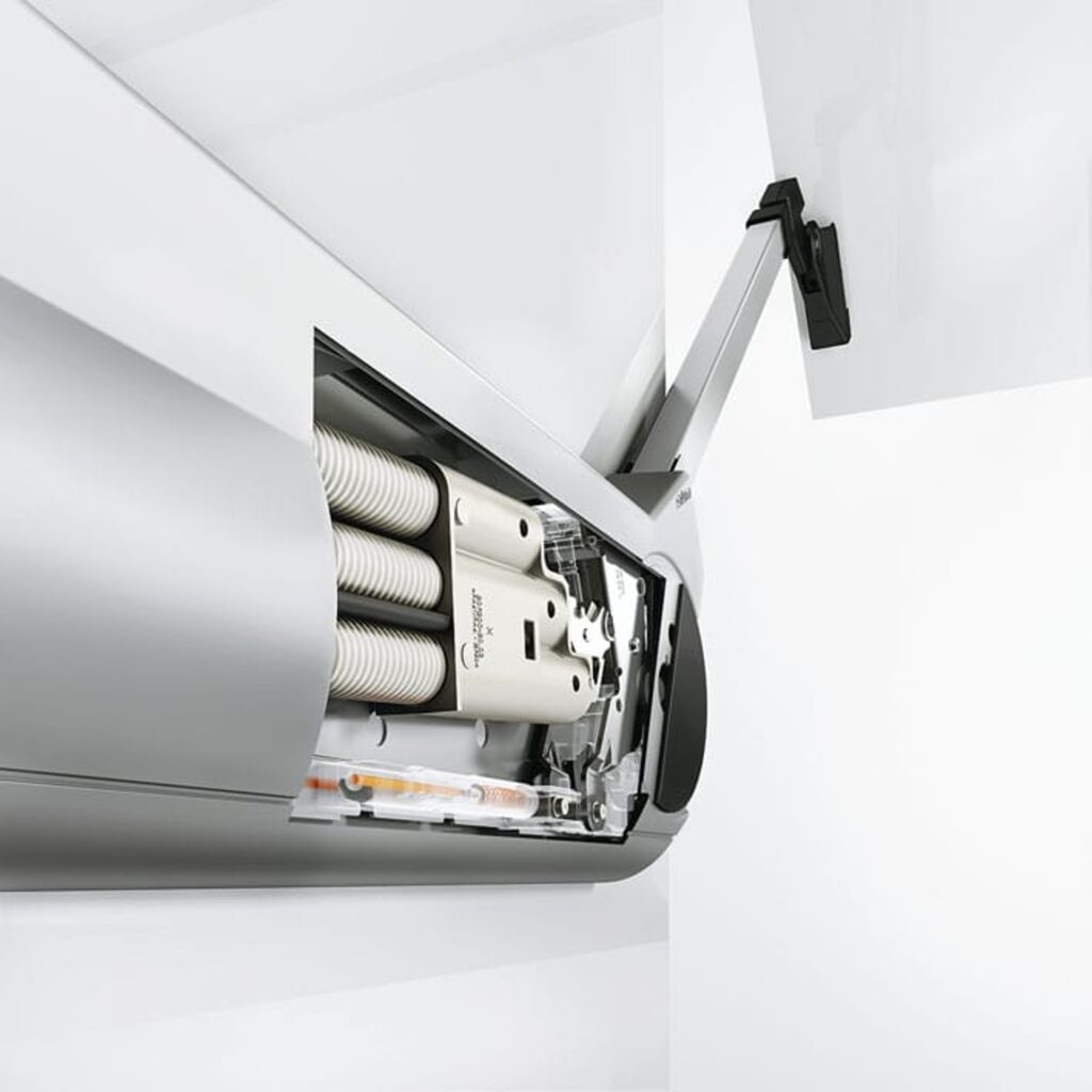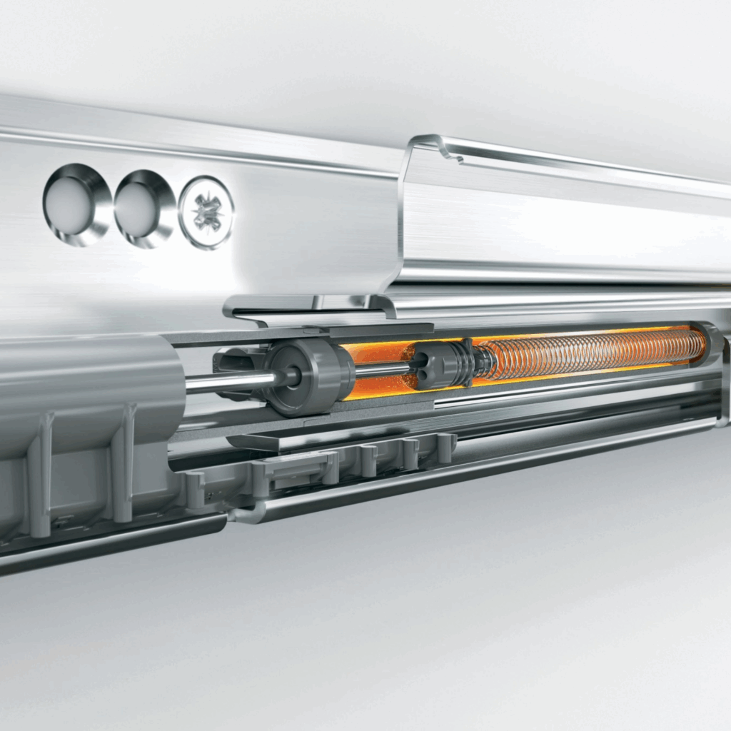BLUMOTION-dämpningen är integrerad i klaffbeslagen, gångjärnen och utdragssystemen. För gångjärn utan integrerad dämpning kan BLUMOTION-funktionen monteras i efterhand.