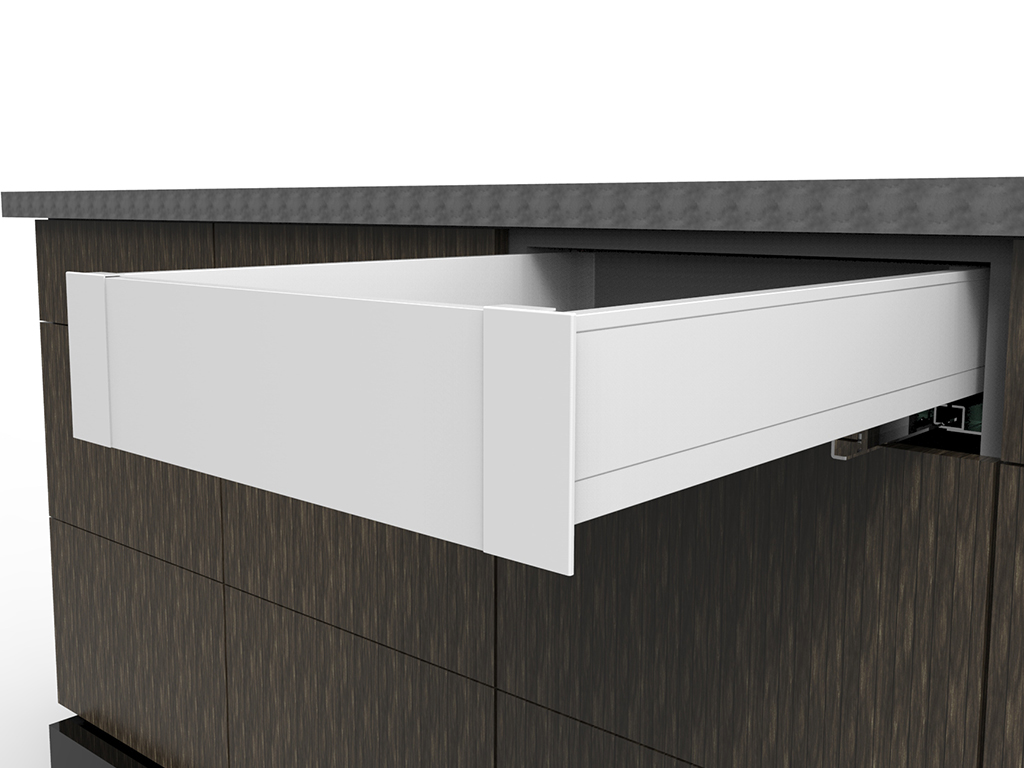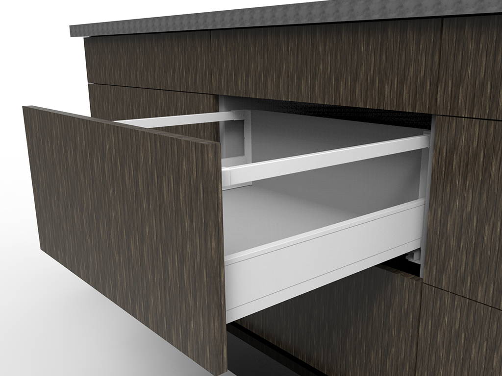 Med egen tillverkning av dämpade lådor får vi högst kvalitet per betald krona. Dämpade lådor är lådor som har mjukstängning inbyggt i sina lådskenor – lådan går igen mjukt och tyst. Våra beslag passar in i ett stort antal monteringssituationer och kan bearbetas och monteras med största precision. När det kommer till kvalitet, så är endast det bästa gott nog och därför arbetar vi med kökslådor som kommer ifrån Blum. De står för kvalitet och innovation. Deras utdragssystem och fyra olika öppnings- och dämpningsfunktioner bidrar till funktionella och användarvänliga lösningar i bl a köket.